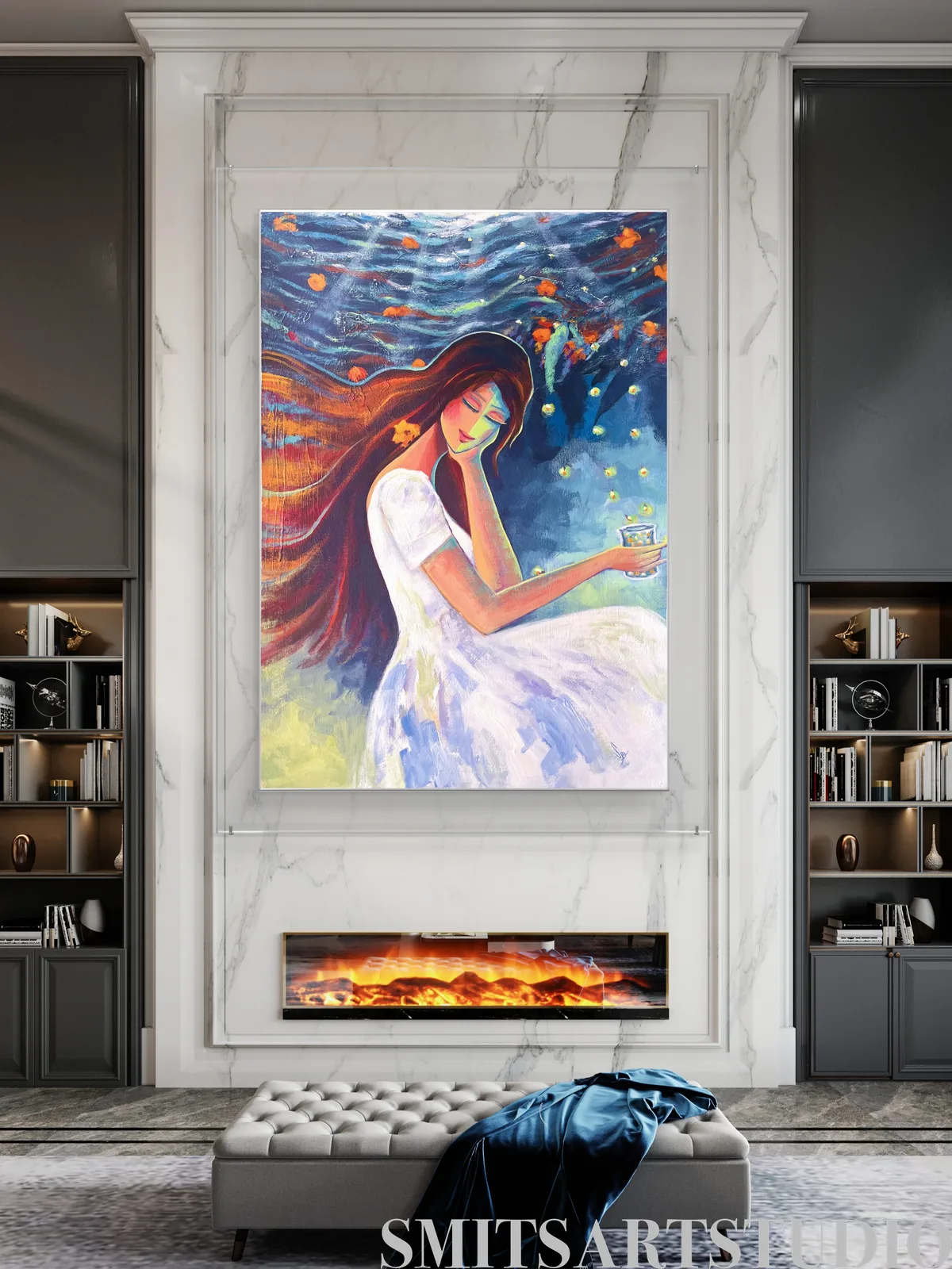At the core of her oeuvre lies a profound exploration of the human condition, examined through the prism of spiritual consciousness and the bonds that unite us. Through her soft feminine figures and symbolic elements of nature, she explores a vivid spectrum of emotions, energy, and dreams. Her paintings reflect the human journey towards wholeness across different realms. Her narratives navigate the liminal spaces where earthly connections and spiritual undercurrents converge, illuminating the profound architecture of the soul.